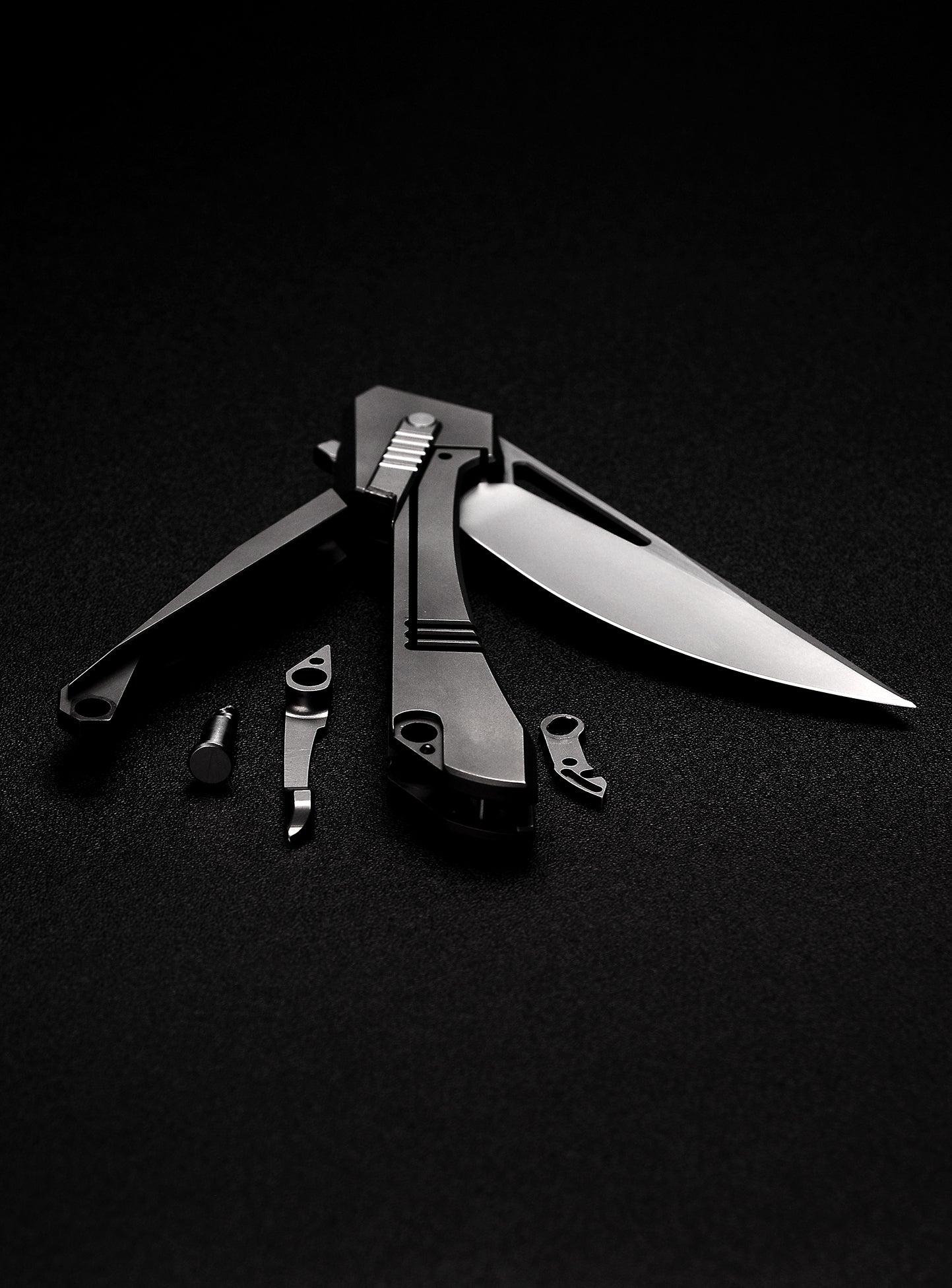 The challenge with most folding knives is that the disassembly and reassembly requires usage of 1-3 different tools,which can cause frustration due to difficulties of perfectly recentering the blade and waiting for thread locker to cure.